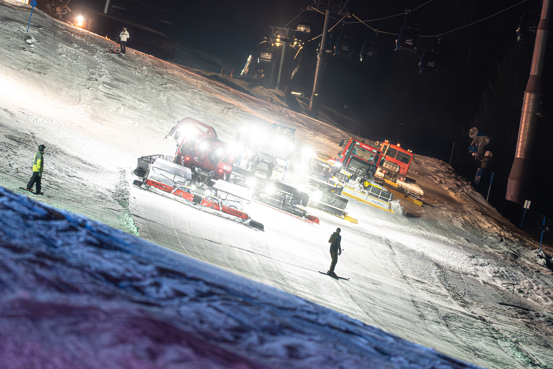 Während die Skifahrer die frisch präparierten Pisten genossen, bot sich an der Bergstation eine Parade der Superlative: Eine Aufreihung geschichtsträchtiger Pistenbullys – von legendären Klassikern bis hin zur modernsten Elektro-Technologie. Die Kraft dieser Maschinen im Kontrast zur nächtlichen Stille der Berge festzuhalten, war ein Fest für jeden Industrie- und Eventfotografen.